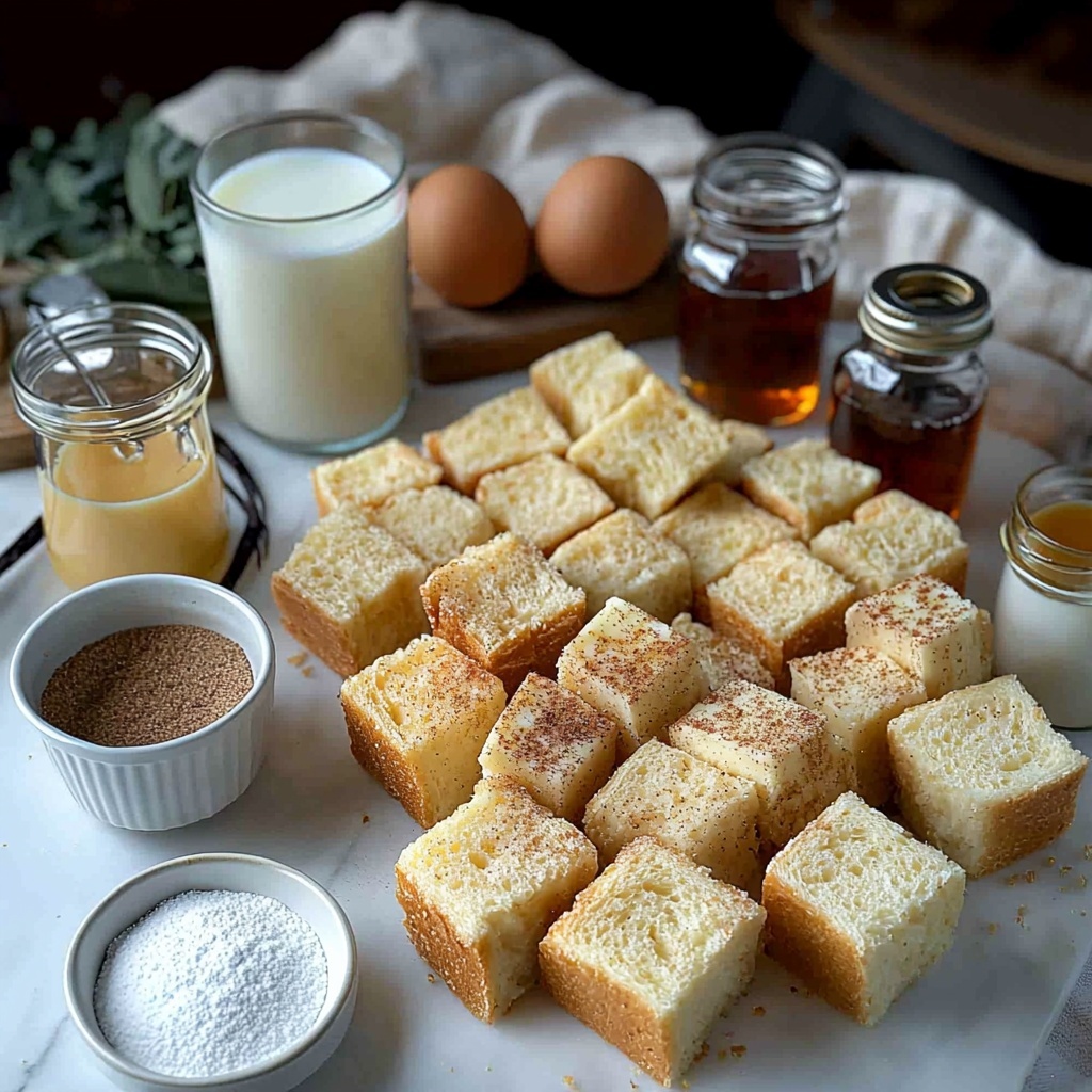 Getting ready to make this Air Fryer French Toast Bites Recipe is a breeze because the ingredients list is straightforward but essential to delivering that perfect balance of flavor, texture, and color in every bite.