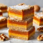 These Apricot Bars offer a delightful blend of sweet dried apricots, crunchy walnuts, and flaked coconut atop a buttery, golden crust. Perfectly baked to achieve a tender texture and topped with a dusting of powdered sugar, these bars make a delicious snack or dessert for any occasion.