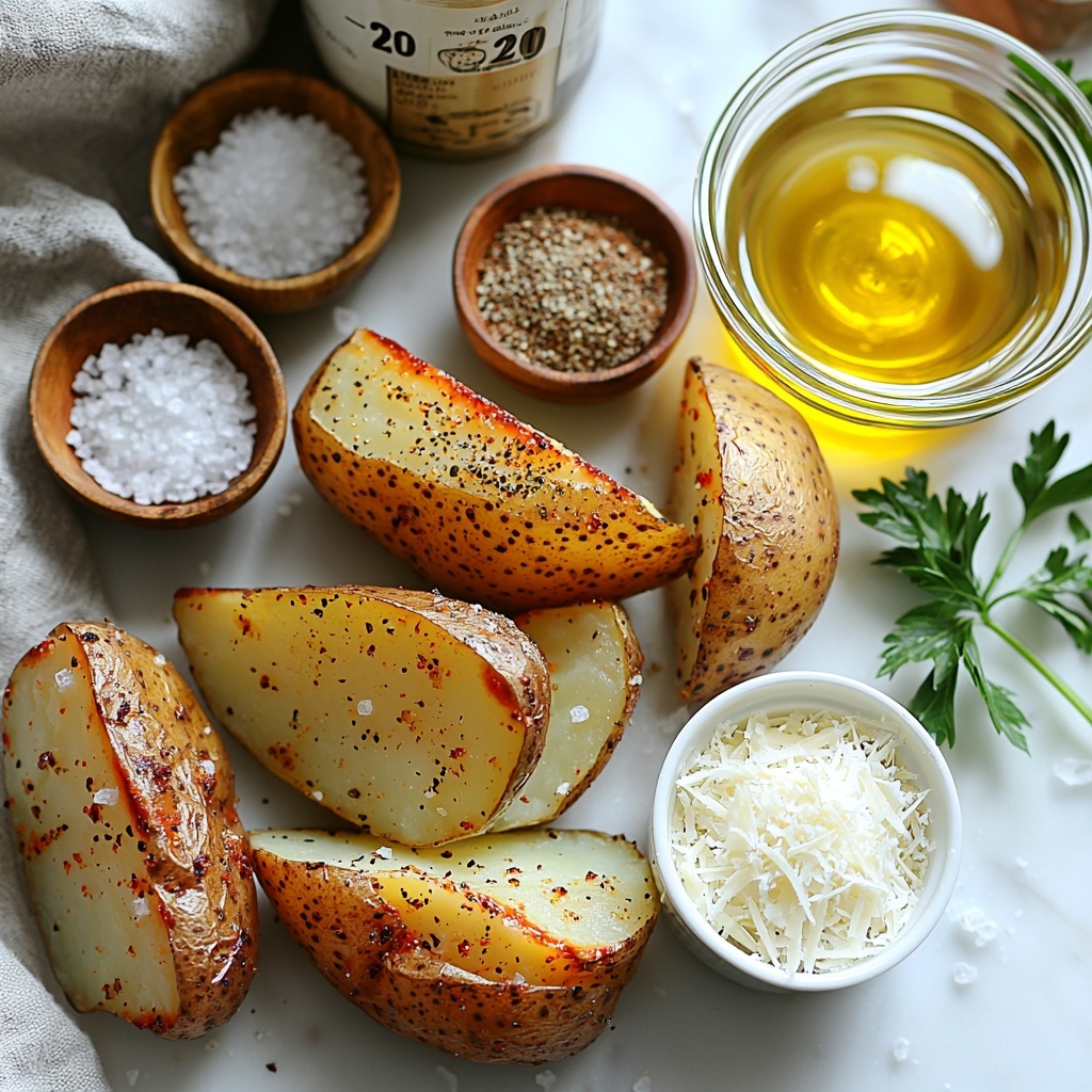 Each ingredient in this Baked Garlic Parmesan Potato Wedges Recipe plays a crucial role in building flavor and texture, starting from the potatoes themselves to the zesty seasonings and the irresistible Parmesan finish. These pantry staples come together effortlessly to create a dish that looks as good as it tastes.