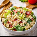 A refreshing and flavorful BLT Pasta Salad combining tender bow tie pasta, crisp romaine lettuce, juicy tomatoes, and smoky bacon, all tossed in a tangy ranch and barbecue sauce dressing. Perfect for a light lunch or a side dish at any gathering.