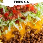 - Assemble Casserole: When the fries are done, remove the baking dish from the oven and turn the fries to mix them. Sprinkle half of the shredded American cheese evenly over the fries. Next, layer the browned ground beef mixture on top of the cheese. Finally, sprinkle the remaining cheese over the beef.