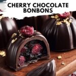 These Cherry Chocolate Bonbons are an indulgent treat featuring a rich dark chocolate shell filled with a luscious cherry ganache. The ganache blends dark chocolate, cream, butter, and cherry preserves for a perfect balance of sweetness and tartness. Finished with a drizzle of white chocolate, freeze-dried cherry pieces, and optional edible gold leaf, these bonbons make an elegant dessert or gift-worthy delight.