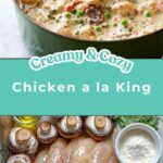 This classic Chicken a la King recipe features tender chicken breast pieces cooked in a rich, creamy sauce with mushrooms, peas, and pimentos. Infused with a medley of herbs and a touch of heat from hot sauce, it’s a comforting dish perfect to serve over egg noodles, rice, or biscuits for a hearty and flavorful meal.