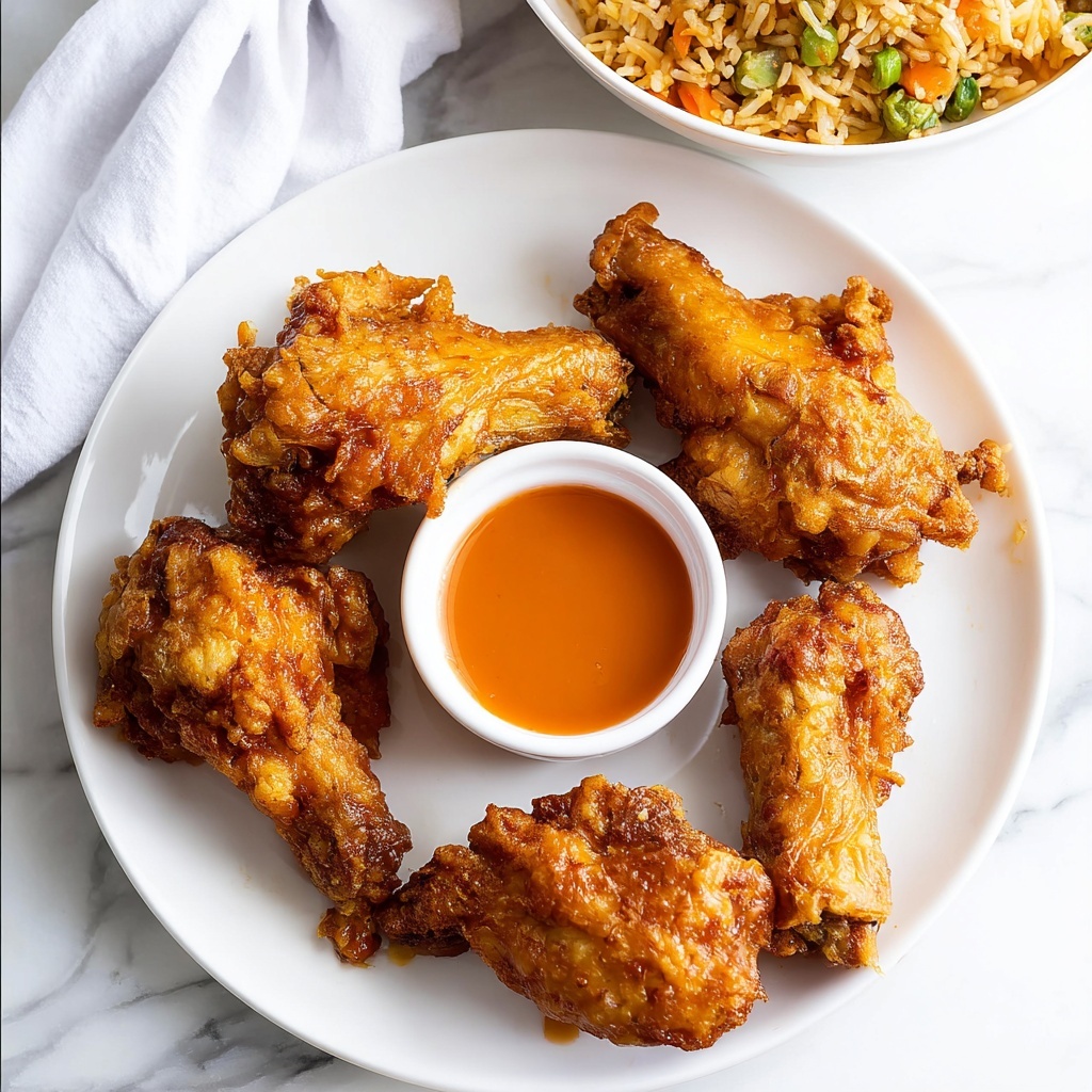 Vegetable fried rice is the classic perfect partner, helping balance the rich, crispy wings with its savory, slightly sweet accents and fluffy texture. Steamed bok choy or a simple cucumber salad also work wonderfully to lighten and refresh the palate between bites.