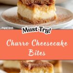 Delight in these Churro Cheesecake Bites that combine a cinnamon-spiced churro crust with a creamy cheesecake layer topped with a crunchy cinnamon sugar sprinkle. Perfect as a sweet treat or dessert, these bars offer the classic flavors of churros in cheesecake form, baked to perfection and chilled for the ideal texture.