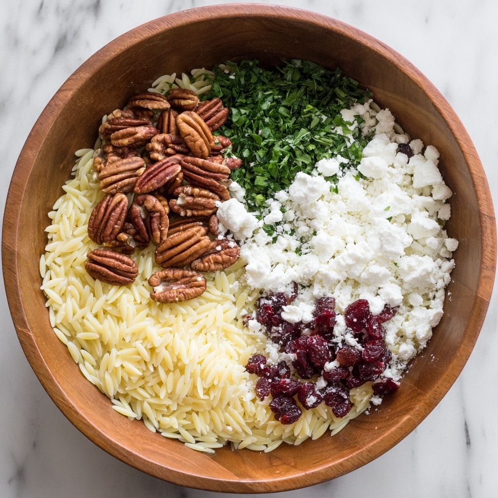 Start by cooking the orzo according to the package instructions, usually boiling it in salted water for about 8 to 10 minutes until tender but still slightly firm to the bite. Once cooked, drain it thoroughly and allow it to cool just a bit. This step is fundamental because perfectly cooked orzo sets the stage for that wonderful texture we’re aiming for.