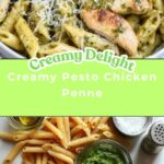 A delicious one-pot creamy pesto chicken penne that combines tender, golden chicken breast with perfectly cooked penne pasta in a rich and flavorful pesto cream sauce. This easy-to-make skillet recipe takes just 35 minutes and is perfect for a comforting weeknight dinner.