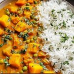 This creamy pumpkin curry combines tender pumpkin chunks simmered in rich coconut milk with fragrant spices, garlic, and ginger. Finished with fresh lime juice and cilantro, this vibrant dish delivers warmth and flavor in every comforting bite, perfect for a cozy meal.