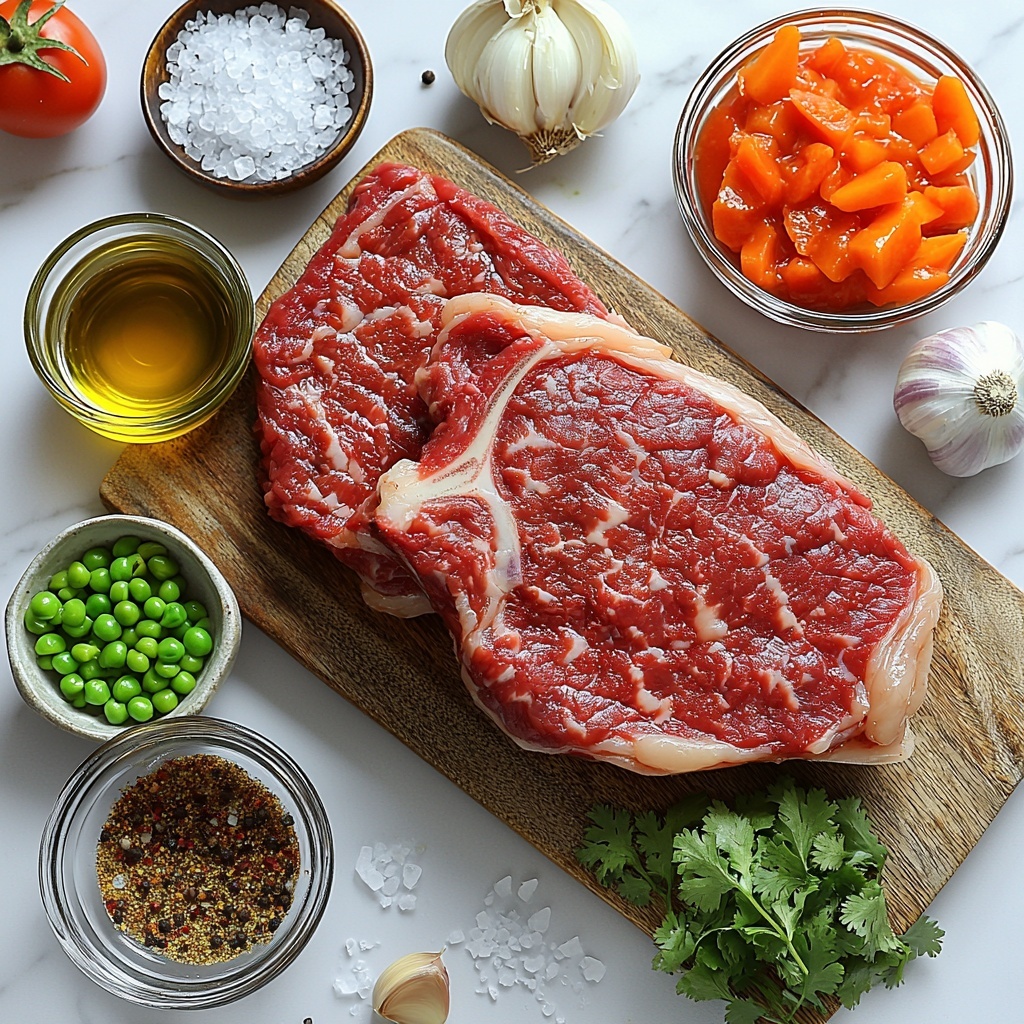 Don’t let the simplicity of these ingredients fool you; each one is chosen to build layers of flavor and texture that make this dish special. From the rich ribeye steak to the fresh peas and aromatic spices, every element plays a crucial role in creating this unforgettable meal.
