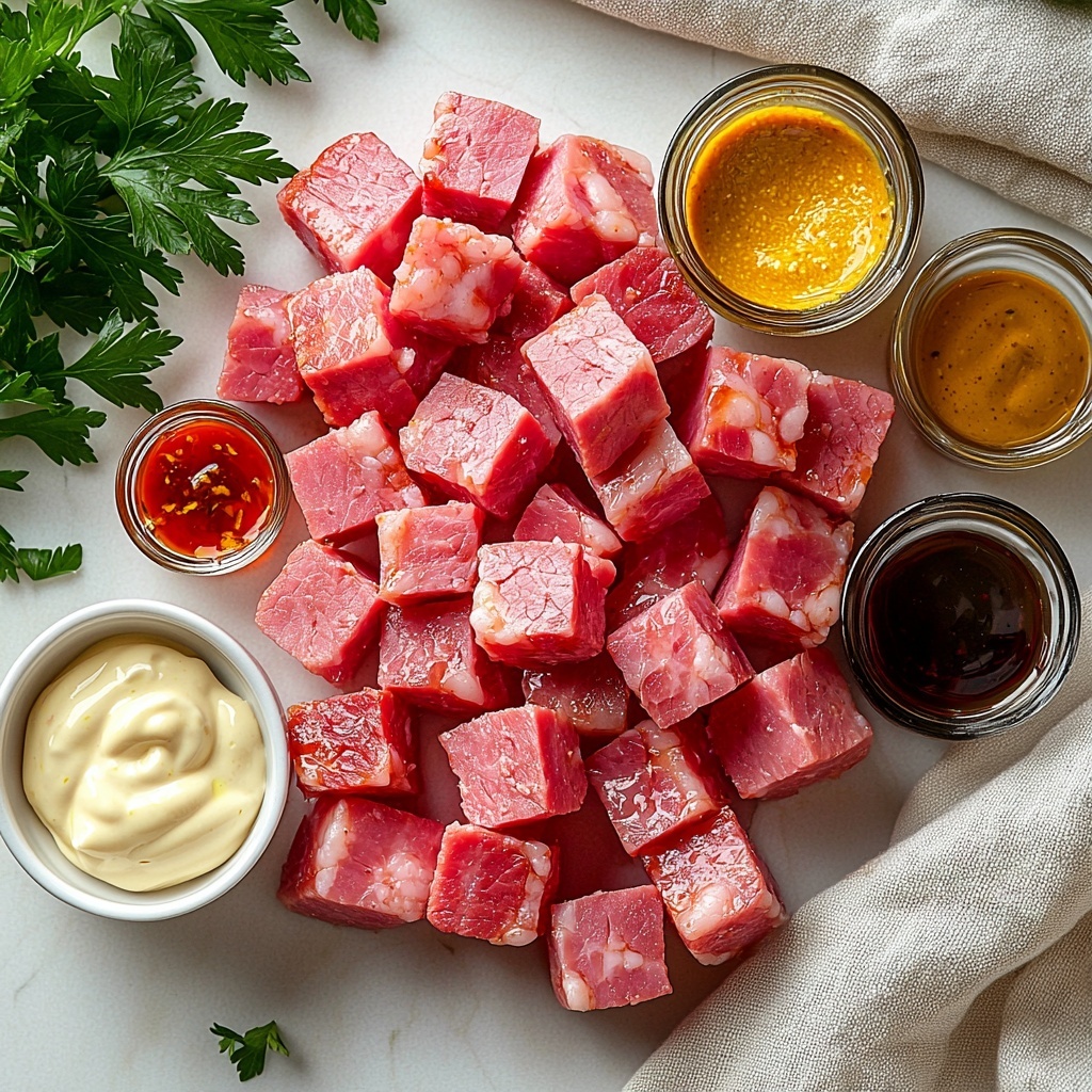 Enhance your Deviled Ham spread with simple garnishes that add color and flavor contrast: think small sprigs of fresh parsley, a sprinkle of finely chopped chives, or a pinch of paprika for warmth and a hint of smoky color. These little touches make your presentation pop and add subtle flavor notes.
