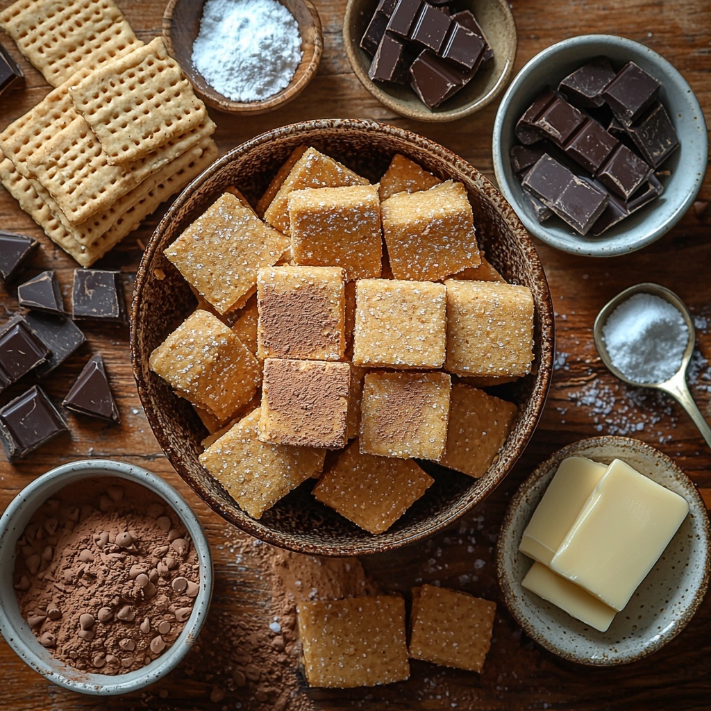 This recipe calls for straightforward ingredients that come together to create a texture-packed, flavor-rich experience. Each one plays a distinct role, from the crunch of the graham crackers to the silky chocolate topping that finishes these squares off beautifully.