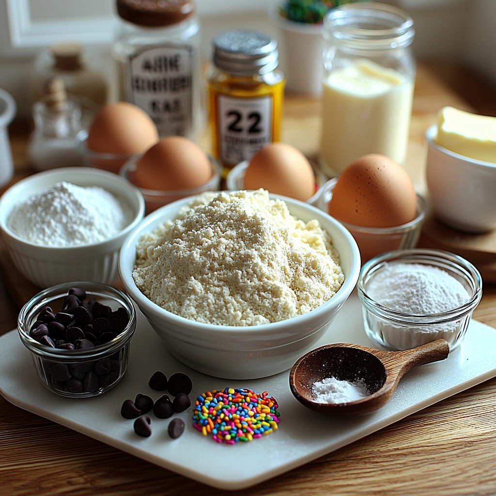 These ingredients are simple pantry staples but come together to create a symphony of textures and flavors. Each element is key for making the Easter Cookie Cake: Juicy, Creamy Bliss Recipe truly unforgettable—from the soft butter that ensures richness to the colorful sprinkles that add festive charm.