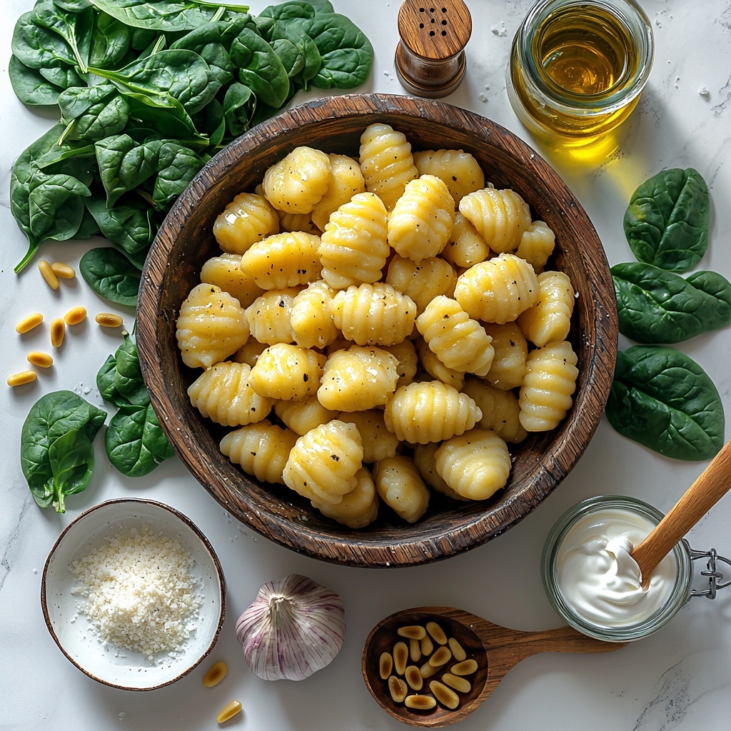 Gathering simple but essential ingredients is the secret to making this dish shine. Each element plays its part, from the soft gnocchi that melt in your mouth to the fresh spinach that brightens the plate with color and nutrition. The creamy sauce is a dreamy blend that balances richness and freshness perfectly.