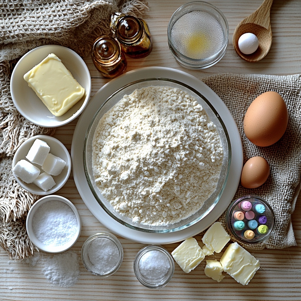 Every great cookie starts with a few simple, pantry-friendly ingredients, and this recipe is no exception. Each item plays a crucial role in creating the perfect balance of flavor, texture, and color that makes these sugar cookies stand out.
