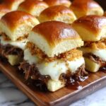 - Serve: Remove the sliders from the oven, slice into individual servings, and serve immediately with warm au jus for dipping, providing a rich, flavorful complement to the savory sandwiches.