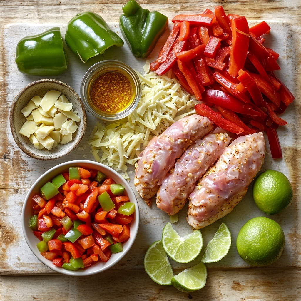 These ingredients are straightforward but essential to capturing the true spirit of fajita flavors in this stuffed chicken masterpiece. Each one plays a critical role, from the sweetness and crunch of the bell pepper to the creamy melt of Monterey Jack that ties everything together.