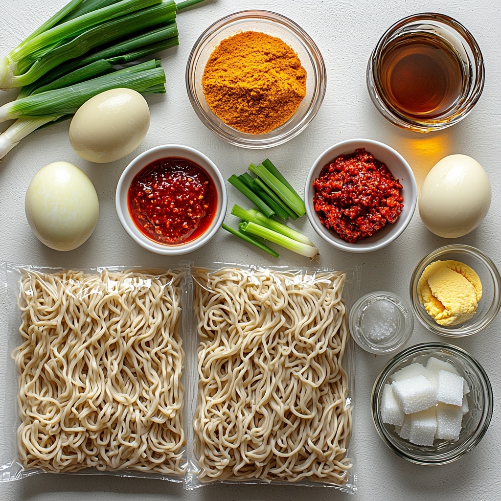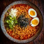 Transfer your spicy noodles to serving bowls, then top with thinly sliced green onions and toasted sesame seeds. For an extra touch of comfort, add boiled eggs cut in half—the creamy yolks provide a welcome break from the fiery sauce. Your Fiery Spicy Korean Buldak Ramen Recipe is now ready to delight your taste buds!