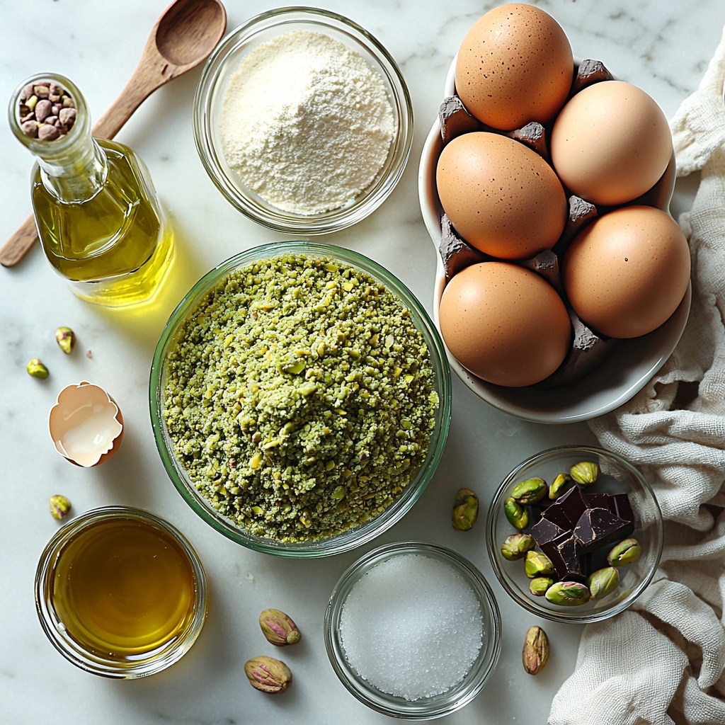 This recipe relies on a handful of simple yet essential ingredients that make all the difference in flavor and texture. Each element plays a vital role, from the nutty pistachio and almond flours giving it a wonderfully tender crumb, to the silky ganache that adds a perfect finishing touch.