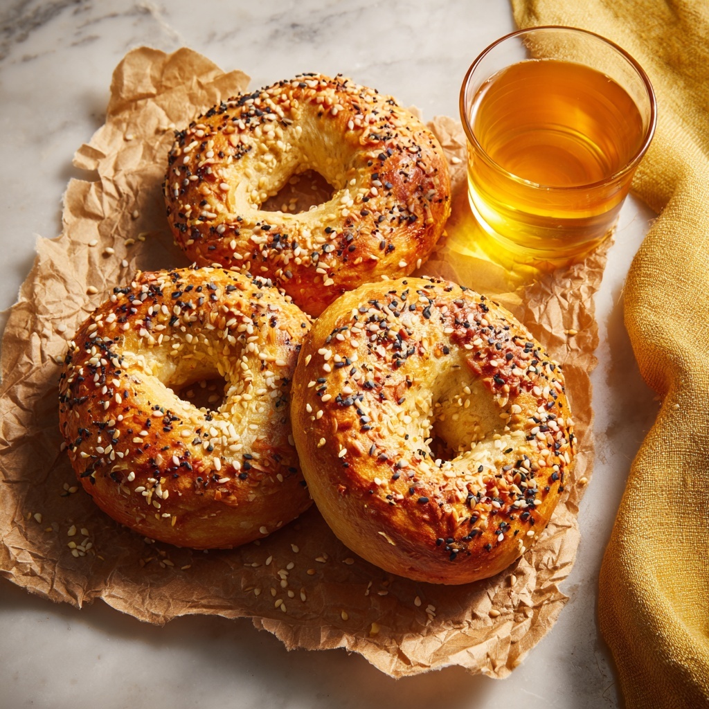 Place the shaped bagels on a baking sheet lined with parchment paper. Brush lightly with a bit of water or beaten egg, then generously sprinkle your seasoning blend over the top. This step adds visual appeal and that irresistible flavor punch. Bake in a preheated oven at 375°F (190°C) for about 20 minutes or until the bagels are golden brown and smell heavenly!