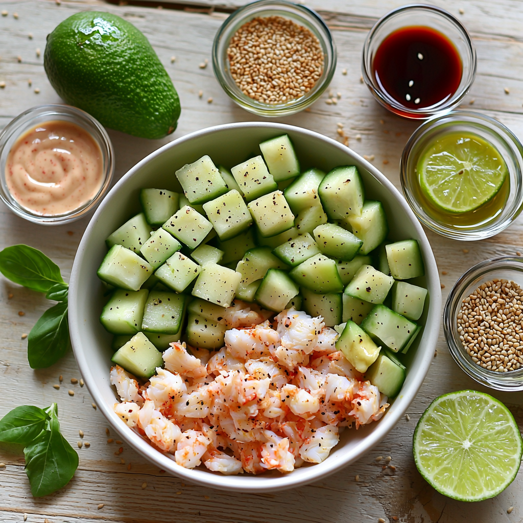 This Fresh Cucumber California Roll Salad offers a vibrant, healthy twist on the classic sushi roll by combining crisp cucumbers, creamy avocado, and flavorful imitation crab meat, all tossed in a tangy, spicy dressing. Perfect for a quick, refreshing meal that captures the essence of California rolls without the complexity of rolling sushi.
