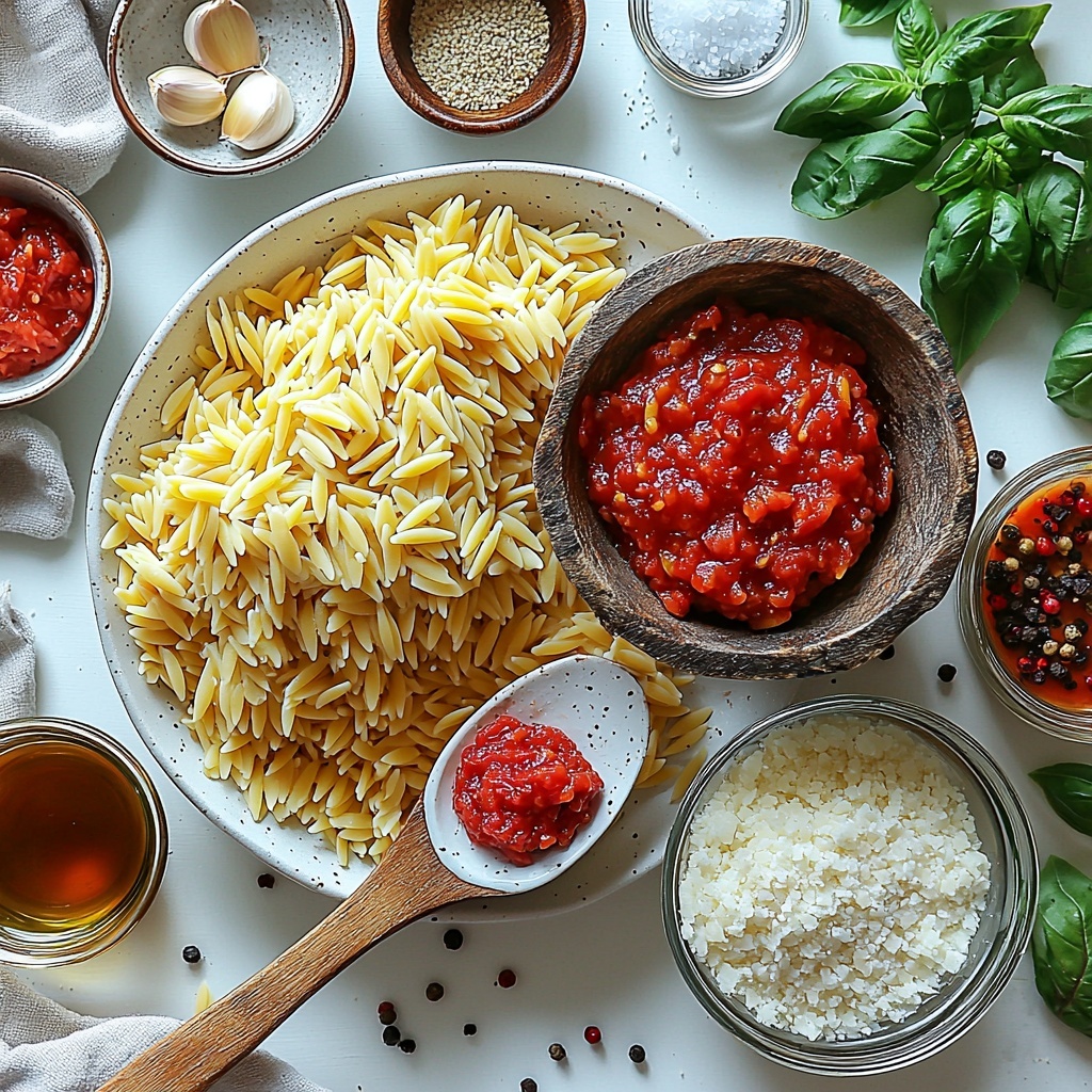 - Orzo pasta: Small, rice-shaped pasta that soaks up the tomato cream sauce perfectly.