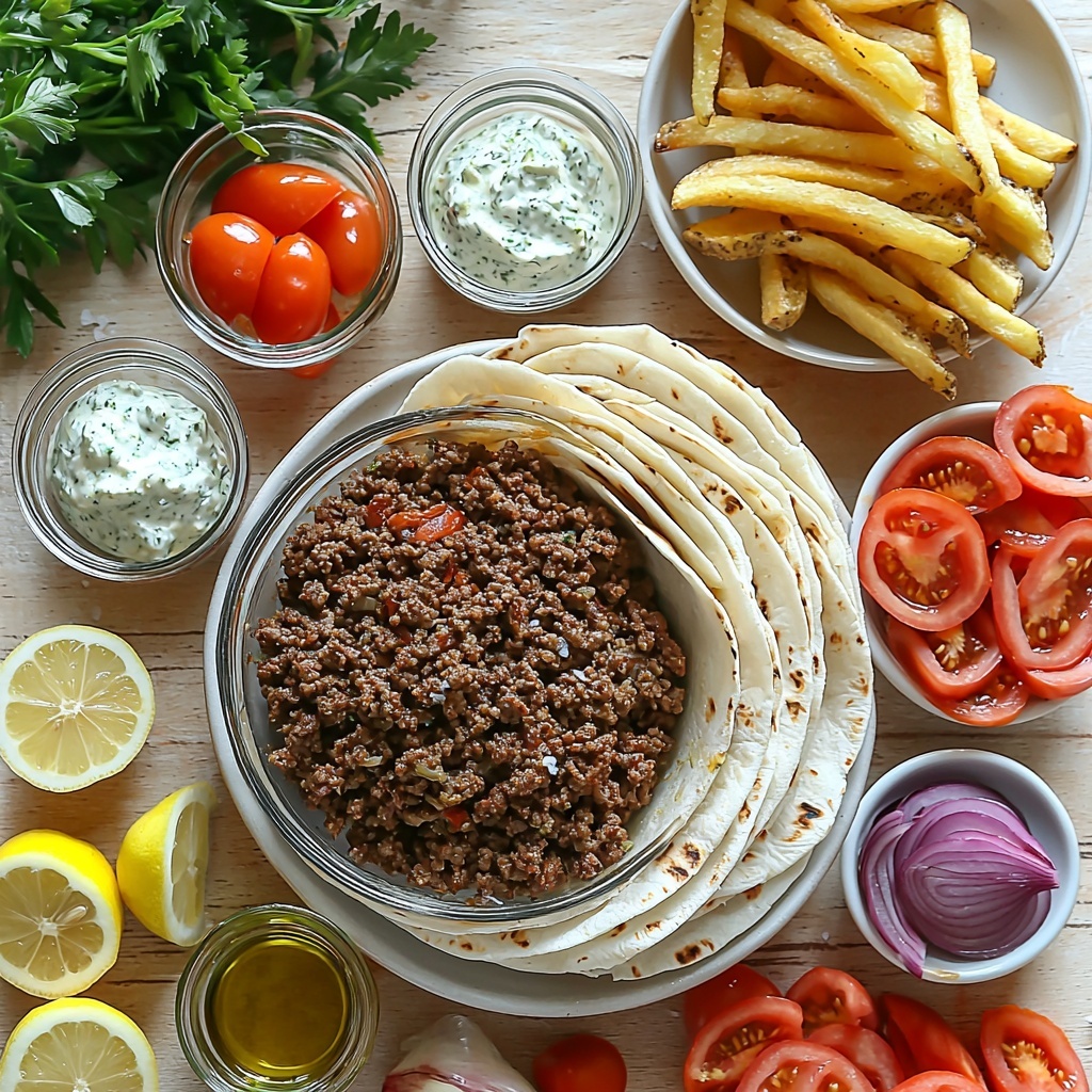 These ingredients are wonderfully straightforward yet crucial for creating that perfect balance of flavor and texture in your Gyros Smashed Tacos Recipe. Each one plays a key role, from the rich, spiced meat mixture to the fresh, bright garnishes that lift every bite.