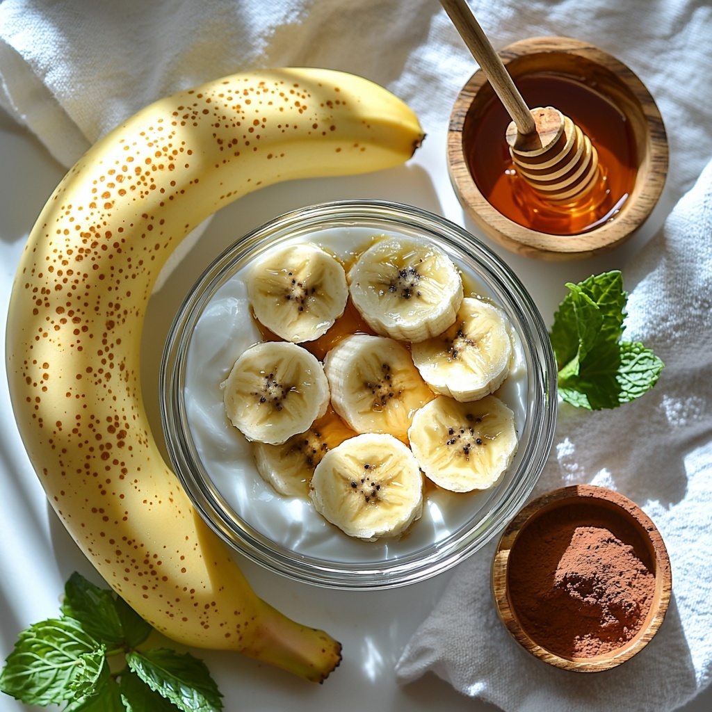 Into your blender or food processor, toss the ripe bananas, Greek yogurt, unsweetened cocoa powder, honey or maple syrup, vanilla extract, and a pinch of salt. Blend everything until it becomes a smooth, creamy mixture without any lumps.