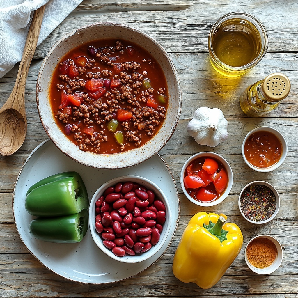 The beauty of this chili lies in its simple but essential ingredients, each contributing to the overall depth of flavor, texture, and color. Gather these pantry and fresh staples, and you’ll see just how easy it is to create such a flavorful classic at home.