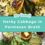 This Herby Cabbage in Parmesan Broth Recipe is vegetarian but not vegan due to the Parmesan cheese and butter. To make a vegan version, substitute plant-based butter and use nutritional yeast or a vegan Parmesan alternative for a similar cheesy flavor.
