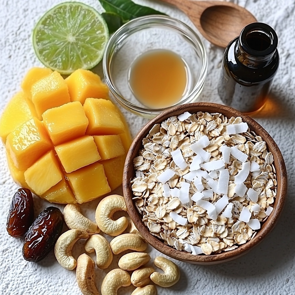 This recipe calls for a handful of simple but essential ingredients, each playing a key role in creating a pie that’s bursting with flavor and pleasing texture. From the naturally sweet dates forming the crust base to the creamy coconut milk elevating the filling’s silkiness, every component is thoughtfully chosen to complement the luscious mango heart of this dessert.