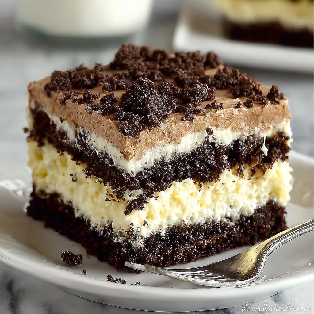 Start by preheating your oven to 350°F (175°C), the perfect temperature to bake a moist, tender cake. Mix up your chocolate cake batter according to the package instructions, then pour it into a greased 9×13-inch pan. This chocolate base is going to be the sturdy yet luscious foundation for your layered masterpiece.