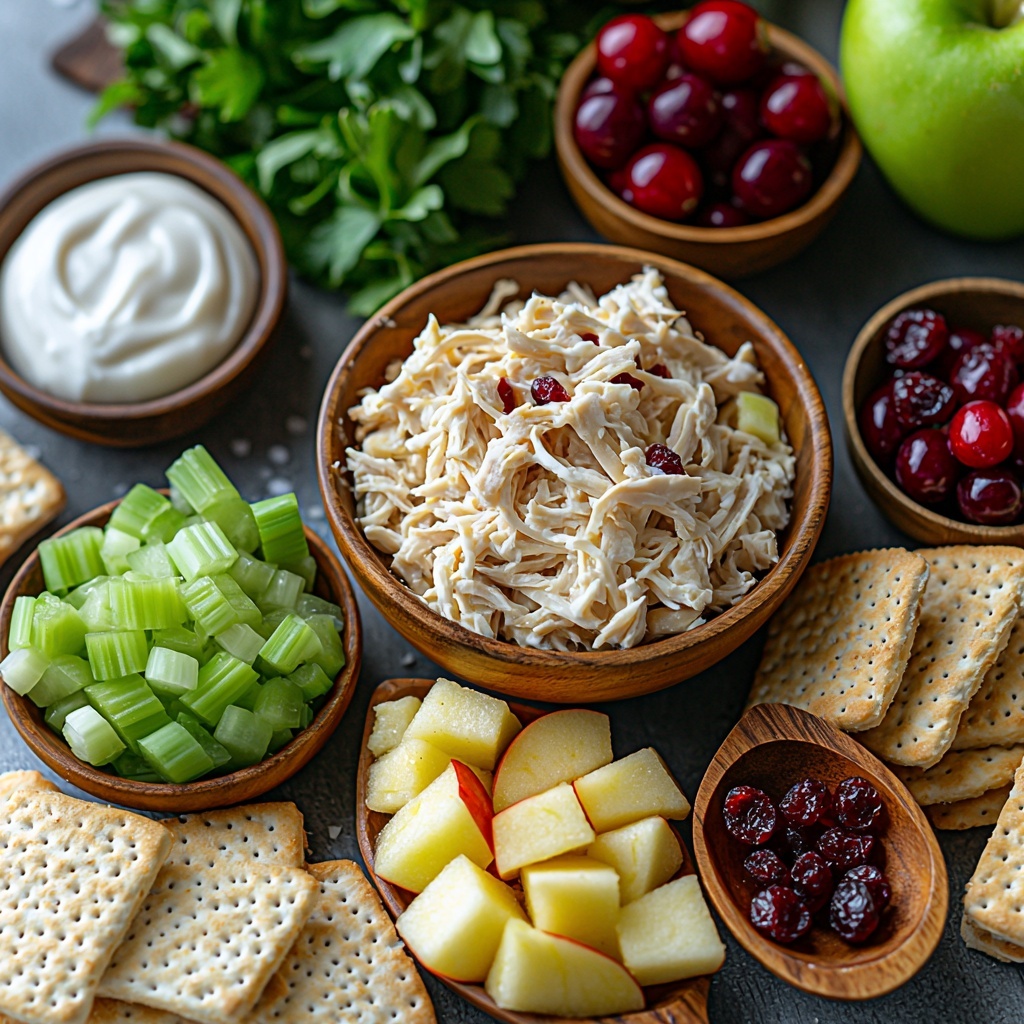 This recipe relies on a handful of simple, wholesome ingredients that each play a crucial role in creating the perfect balance of crunch, creaminess, and sweetness. Every component from the shredded chicken to the grapes adds its own unique touch to the final dish.