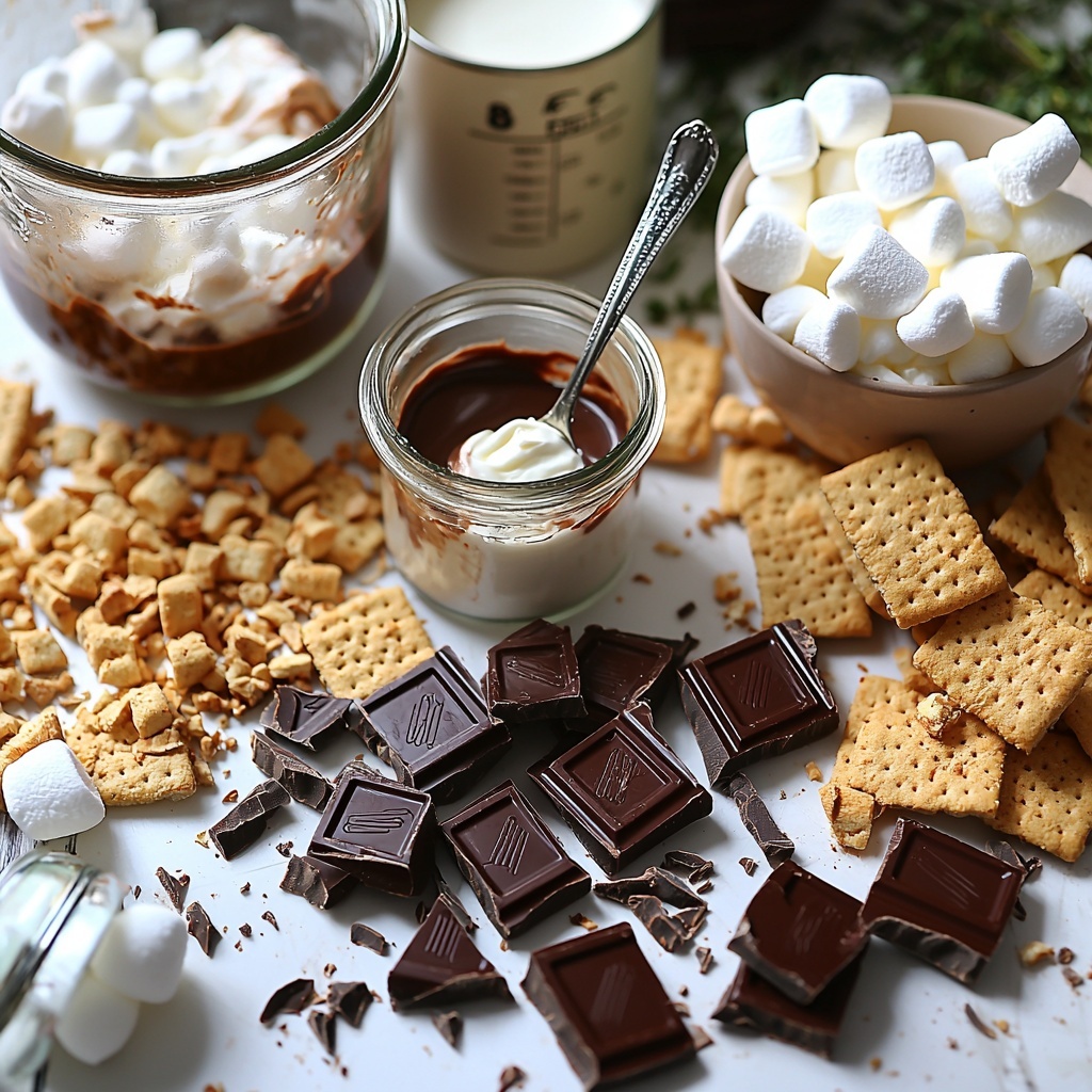 • 7 oz Marshmallow crème (1 jar): Adds fluffy sweetness and that iconic marshmallow flavor without the need for roasting over a fire.