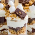 Layered S’mores Pops are a fun, no-bake treat combining layers of melted chocolate, whipped marshmallow cream, graham crackers, and mini marshmallows, served in individual cups with popsicle sticks for a playful twist on the classic campfire dessert. Perfect for parties or a sweet snack, these pops deliver all the flavors of s’mores in a simple, chilled pop format.