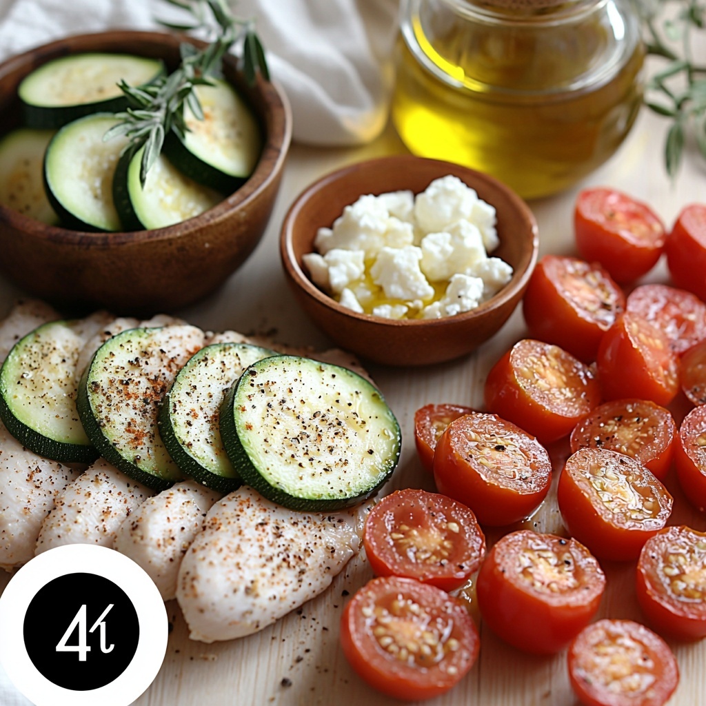The beauty of the Mediterranean Chicken Zucchini Bake Recipe lies in its straightforward ingredients. Each one plays a vital role—whether it’s the juicy chicken breasts as the hearty star, the zucchinis adding a gentle crunch and freshness, or the cherry tomatoes bringing bursts of sweetness. Together, these ingredients create a harmony of flavors that feels both light and satisfying.