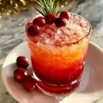 5. Garnish with Festive Flair: Float several fresh cranberries atop the drink. Add a lime wedge or wheel on the rim or inside the glass. Tuck a small sprig of fresh rosemary into the drink or attach it to the glass rim for a holiday touch.