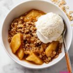 Allow the apple crisp to cool for at least 10 to 15 minutes. This resting time helps the juices thicken slightly so each serving holds together perfectly instead of being soupy. It also gives you time to prepare your favorite accompaniments.