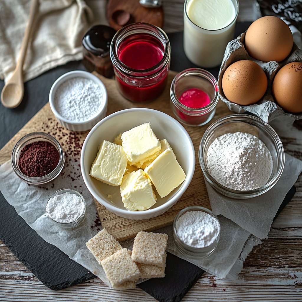 • 1/2 cup of buttermilk: Adds acidity and moistness, helping create that signature red velvet softness.