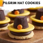 These charming No Bake Pilgrim Hat Cookies are a festive and fun treat perfect for Thanksgiving celebrations. Combining fudge-striped cookies, creamy yellow frosting, Reese’s miniature peanut butter cups, and bright orange mini M&M’s, they come together quickly without any baking required. The frosting acts as an adhesive to create adorable edible pilgrim hats that kids and adults alike will enjoy making and eating.