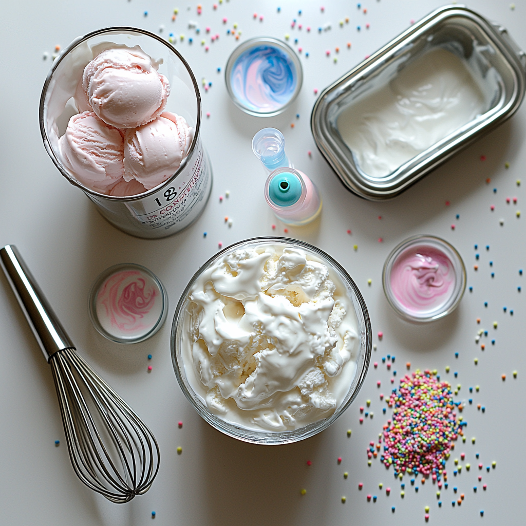 - Food coloring in pink and blue (optional): Adds whimsical, vibrant colors to your ice cream, enhancing the playful cotton candy vibe visual appeal.