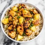 Add a final flourish to your Pineapple Chicken and Rice: A Deliciously Easy Family Dinner Recipe with finely chopped scallions or fresh cilantro for a burst of vibrant color and fresh herbal notes that contrast delightfully with the warm, sweet flavors of the dish.