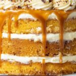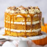 Sprinkle your chopped Heath toffee bits generously over the top to impart satisfying crunch and a hint of chocolate. Then, drizzle caramel sauce artistically over the toffee. The blend of textures and flavors at this stage makes your Pumpkin Torte Recipe a feast for both the eyes and the palate. Now, slice, serve, and get ready for a deliciously comforting experience.