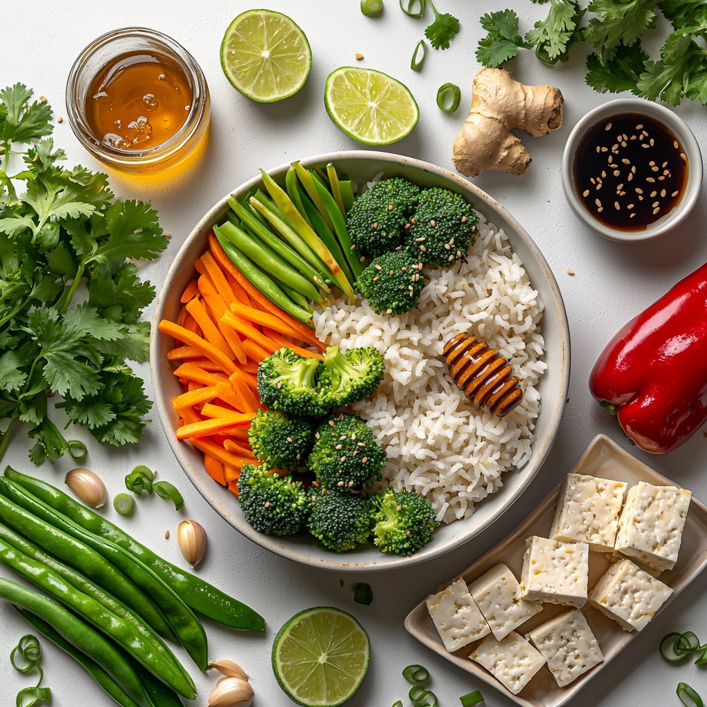 This Quick Honey Soy Veggie Rice Bowl is a vibrant, healthy dish featuring tender jasmine rice topped with crisp-tender sautéed vegetables glazed in a sweet and savory honey soy sauce. Perfect for a fast, nutritious meal, this recipe combines fresh broccoli, carrots, bell peppers, snap peas, and your choice of tofu or cooked chicken, all finished with toasted sesame seeds, fresh cilantro, and a hint of lime for brightness.