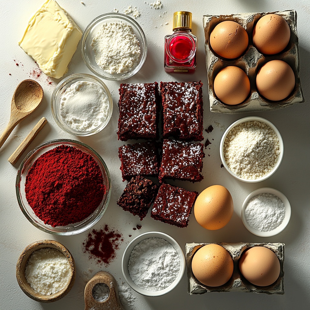 Getting your hands on the right ingredients is the first step to nailing this recipe, but don’t worry—they are straightforward and pantry-friendly. Each element plays a key role in building the unique texture, rich cocoa taste, and striking red color that make these brownies unforgettable.