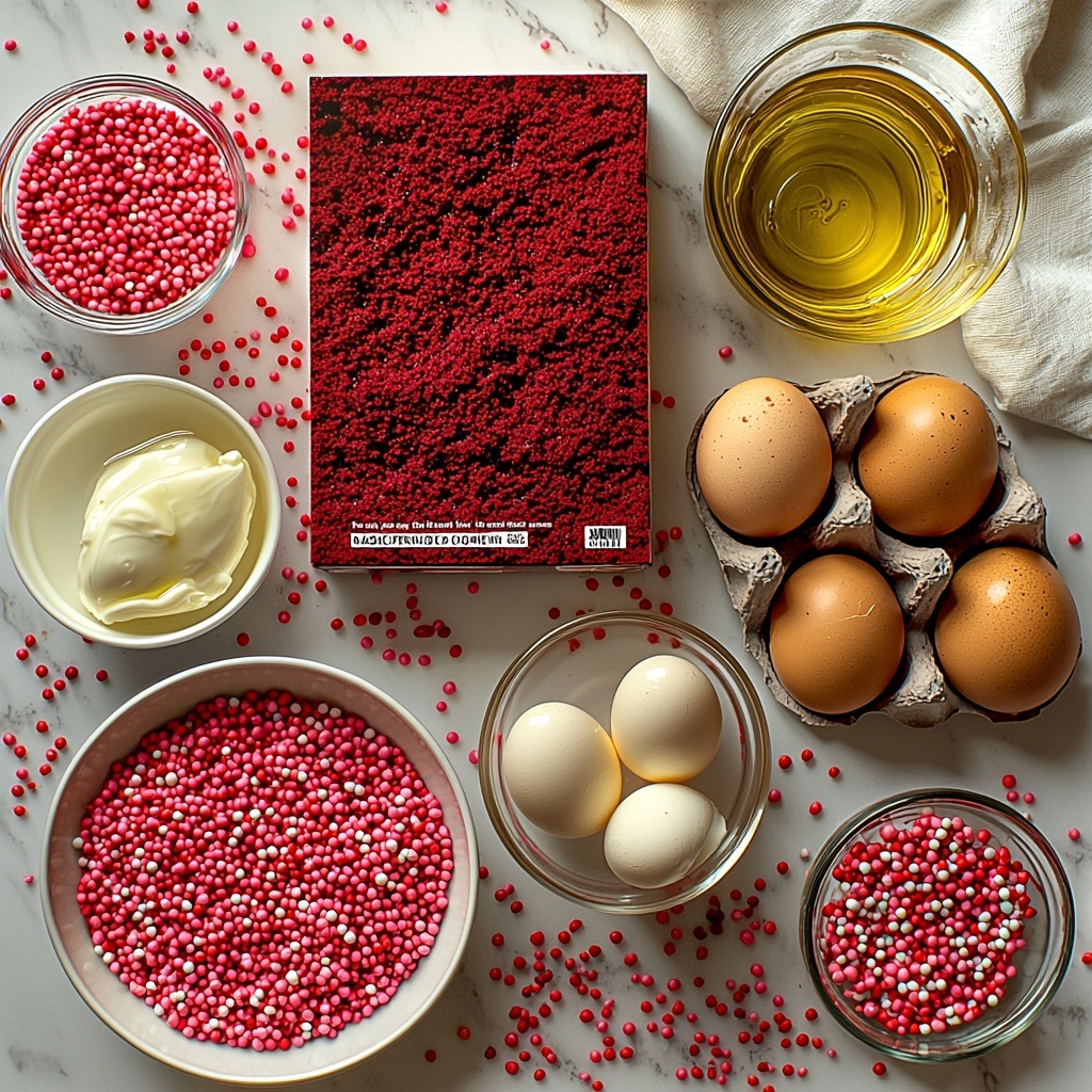 - 1 box (15 oz) red velvet cake mix: Provides the deliciously familiar red velvet flavor and soft cake base.
