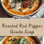 A creamy and comforting Roasted Red Pepper Gouda Soup featuring sweet roasted red peppers, rich gouda cheese, and a blend of aromatic onions and garlic simmered to perfection. This velvety soup is perfect for a cozy meal and easy to prepare in about 40 minutes.