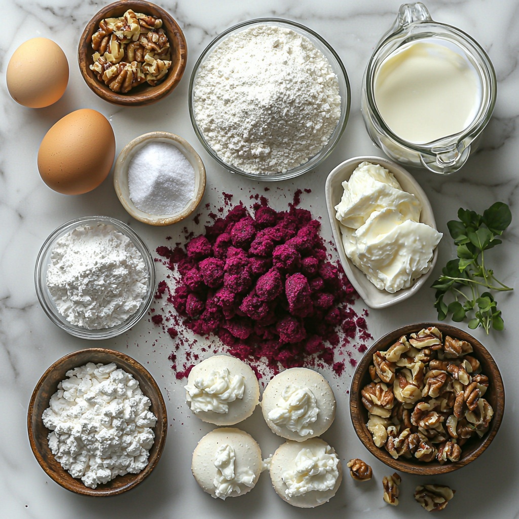 These ingredients might look simple, but each plays a vital role in creating the beautiful color, delicate texture, and irresistible flavor of these Savory Beet Macarons with Goat Cheese and Walnuts Recipe. From the beetroot powder that colors and flavors the shells, to the creamy, tangy goat cheese filling, every item is a building block of deliciousness.