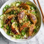If you’re lucky enough to have leftovers (and you might be, because this salad goes fast), store them in an airtight container in the fridge and enjoy within 3-4 days. The dumplings may soften slightly, but the crisp vegetables and the vibrant sesame-soy dressing keep the dish fresh and flavorful for several days.