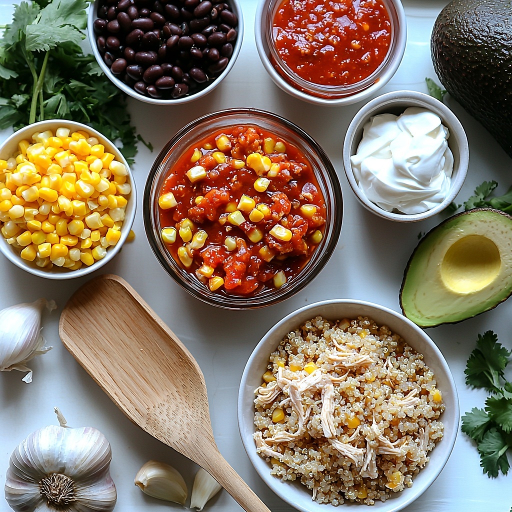 The beauty of this recipe lies in its simple, well-rounded ingredients that come together to create a flavorful, satisfying dish. Each item plays a key role—from the hearty quinoa adding texture and nutrition, to the rich enchilada sauce delivering unmistakable Mexican flair.