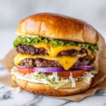 This Smash Burger recipe delivers perfectly crispy, juicy burgers with melted cheddar cheese and classic toppings like lettuce, tomato, pickles, and a tangy mayo-mustard sauce. Using 80/20 ground beef and the smash technique ensures a flavorful crust and tender inside. Ideal for a quick, satisfying meal with brioche buns adding a soft, buttery finish.